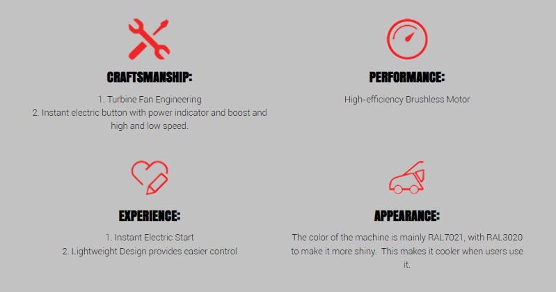 Sicherheitsschutz: Der Laubbläser verfügt über verschiedene Sicherheitsschutzfunktionen, um sicherzustellen, dass Benutzer während des Gebrauchs sicher arbeiten und Unfälle vermeiden können.