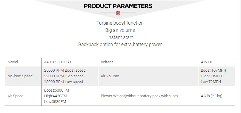 Stabile Leistung: Durch die Verwendung hochwertiger Materialien und Komponenten ist die Leistung von Laubbläsern mit Lithiumbatterie stabiler und Benutzer können sie bedenkenlos verwenden.
