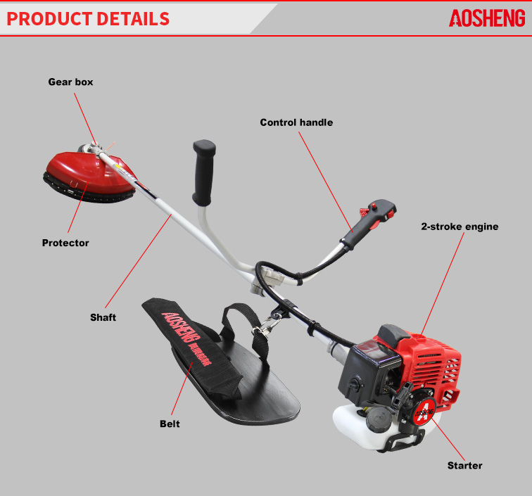 Hochleistungsmotor, Hubraum beträgt 33CC. Bei professioneller Nutzung entsteht Brachland Rohrgröße 26 mm x 1,5 mm, flexibler Schaft mit hoher Festigkeit. Die Schnittbreite beträgt 420 mm ...